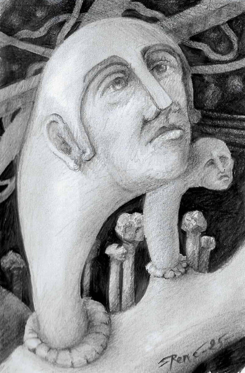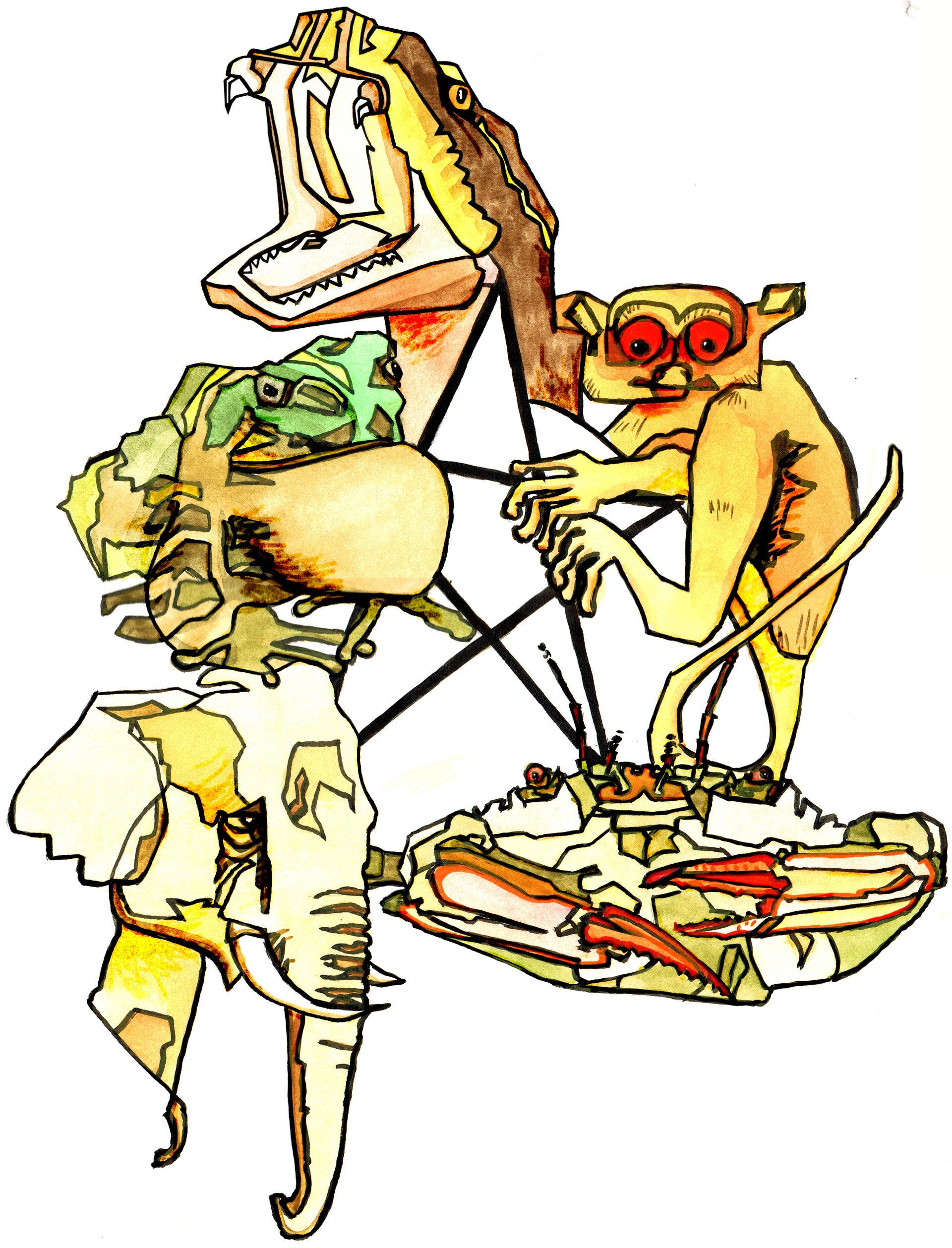 Zwart/wit getekend, ingescand en digitaal ingekleurd.